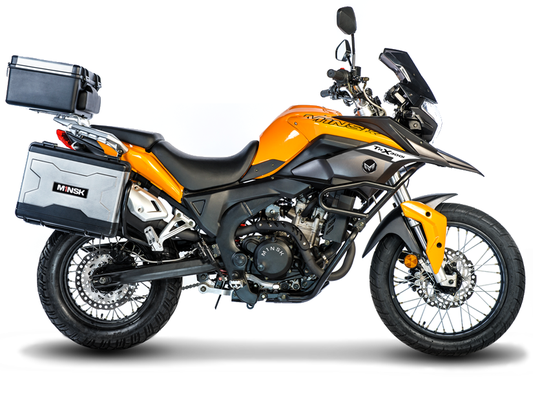 Комплектация Minsk TRX 300i оснащена механической коробкой передач, 0.3 литровым двигателем (26 л.с.). Стоимость данного мотоцикла не объявлена.